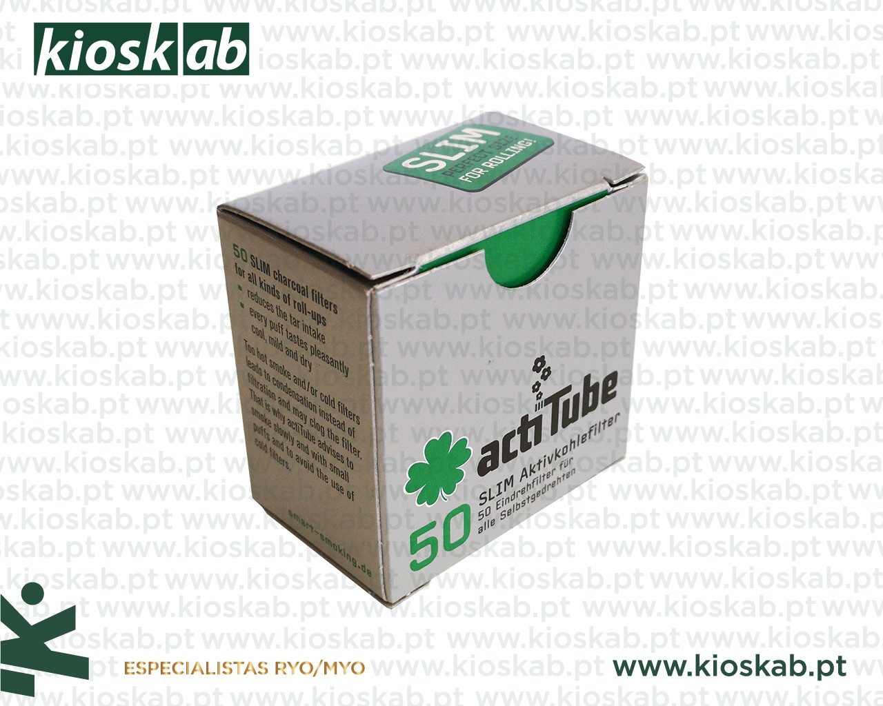 Caixa com 50 filtros slim ( 27 x 7 ) de carvão activo. Displays com 10 caixas.