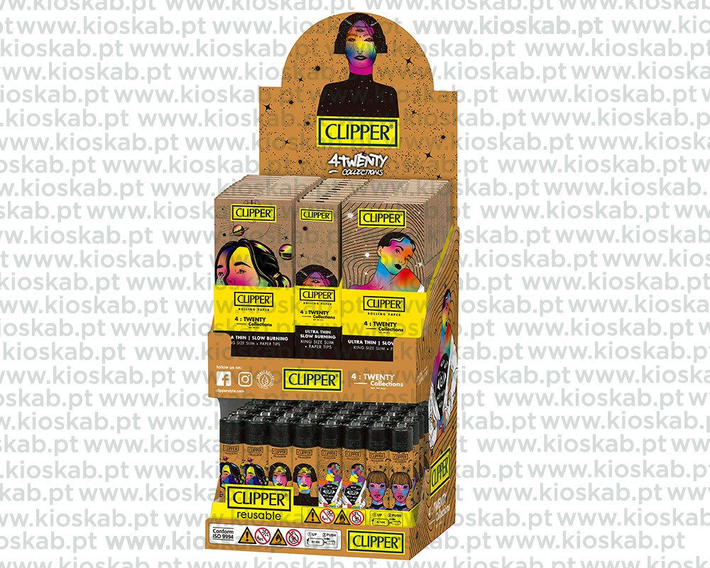 Expositor 48 isqueiros Large Decorados + 24 Booklets Premium KS+Tips + 10 Booklets KS +Tips