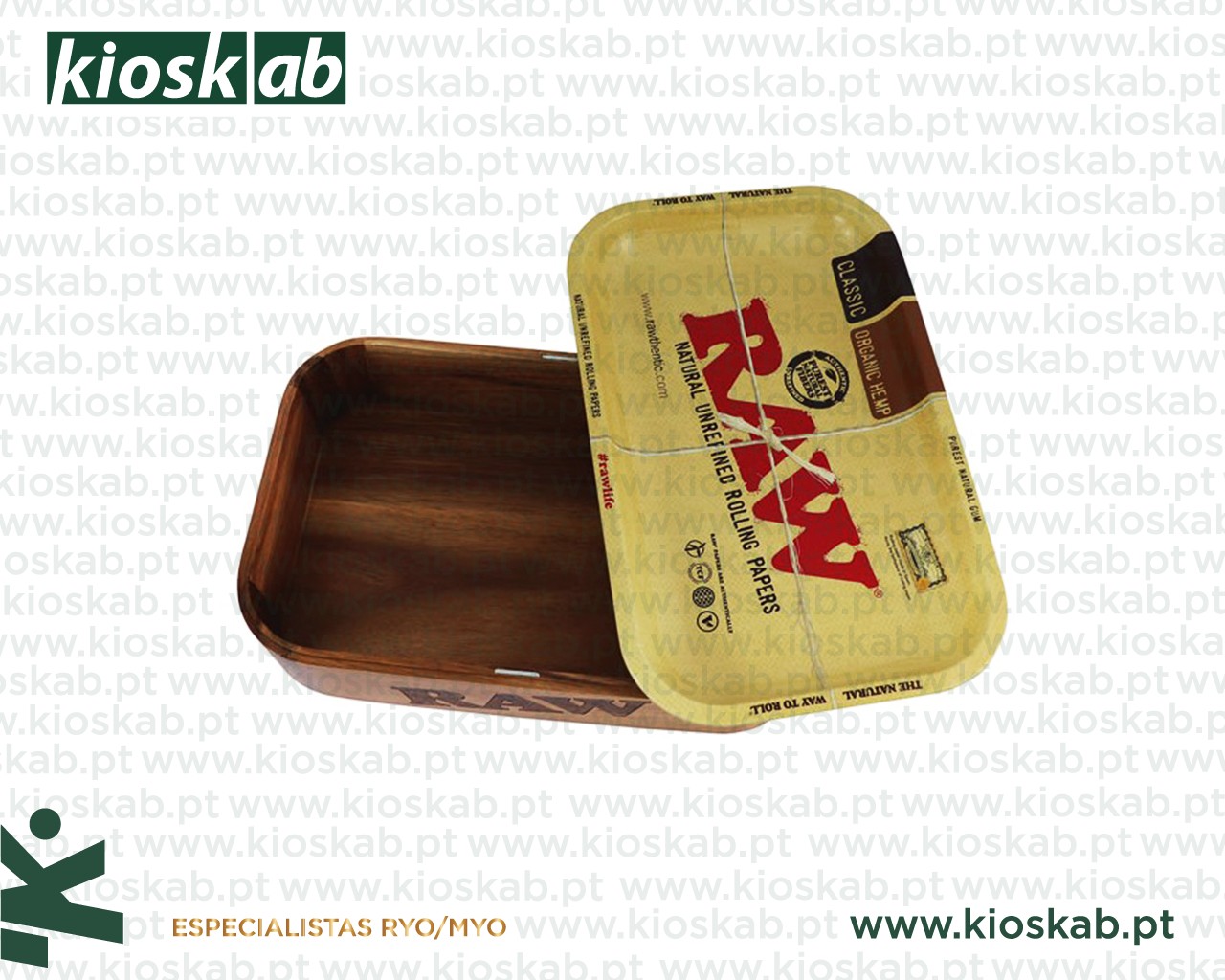 Caixa fabricada para armazenar todos os itens de fumador num só lugar e cobri-la com sua bandeja Raw.Medidas: 27,5 x 17,5