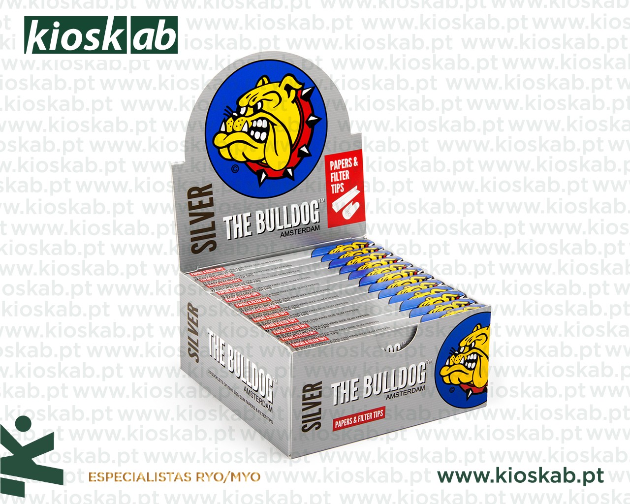 Papel de fumar, 24 livros/caixa, 32 folhas + tips/livro, 40 caixas/cartão