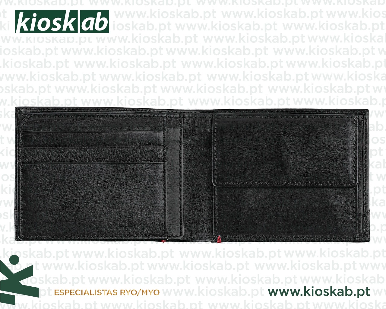Carteira com Porta Moedas em Pele Genuína Preta- Tri-Fold – Com Gift Box – 12 x 9 x 2 cm – 2006020